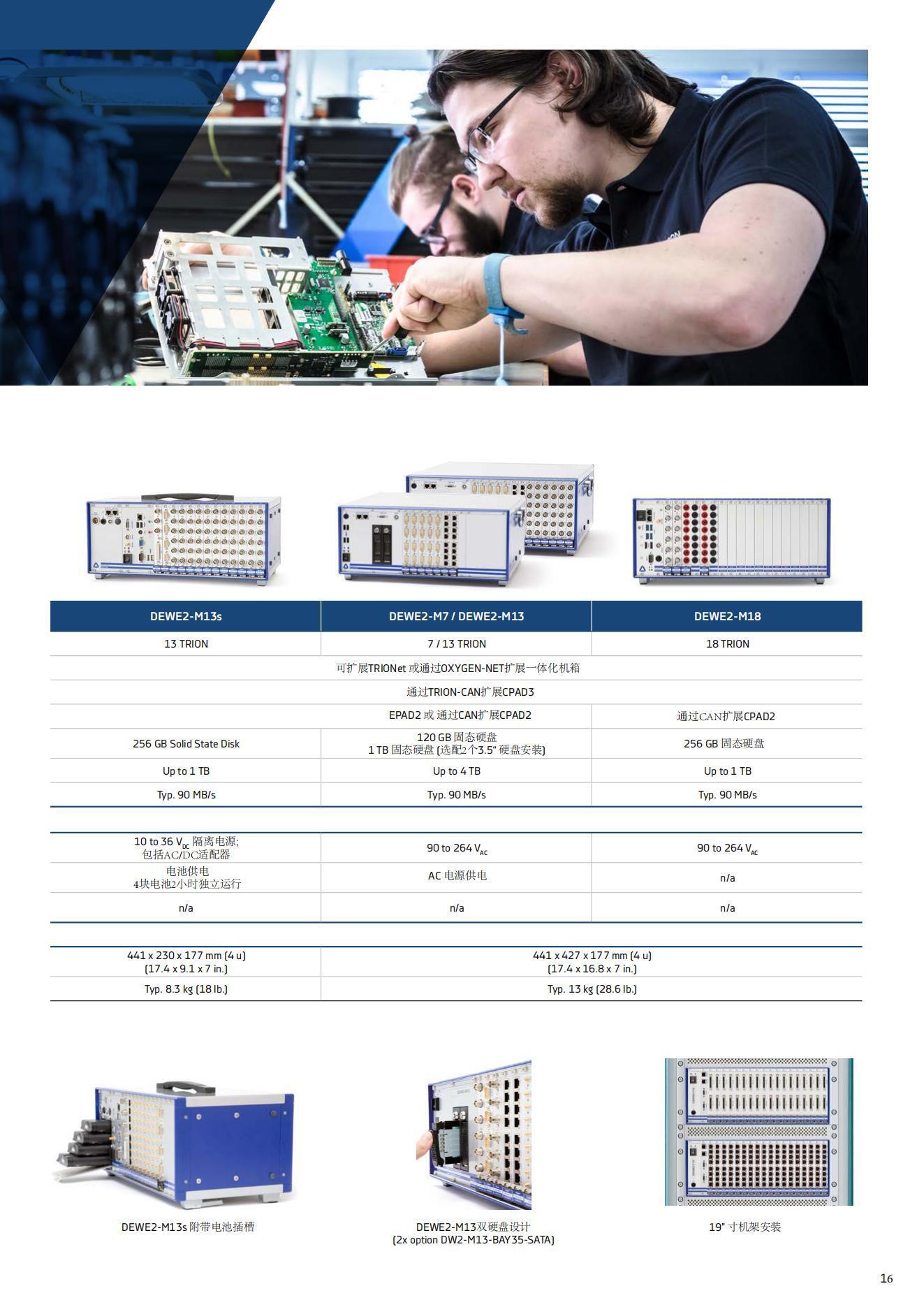 DEWE3- RM16 |  | 128 | 16 x TRION3 or TRION | 8 x 集成 | AC | – | – | 442 x 435 x 222 mm (5 u)